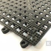 Dirt that falls through the mat is easily hosed away from the floor underneath.