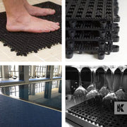 The soft surface of provides a comfortable, slip resistant, safe and dry cushioned surface for bare feet.