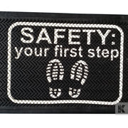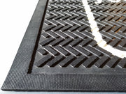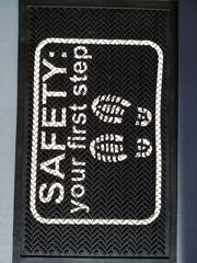 In addition to outdoor uses, the Kleen-Scrape Graphics performs outstandingly well in wet areas, changing rooms, kitchens, in front of beverage machines or in production areas. With its variety of features such as heat and cold resistance and an extreme robustness, you won't want to be without the Kleen-Scrape. This 100% rubber mat lies perfectly flat thanks to its weight and flexibility. Layers of PVC colours are superimposed on one another to create a basic logo or message. Whether as dirt-catcher, a special mat for wet areas or a workplace safety mat, you'll always be well-served by the Kleen-Scrape.